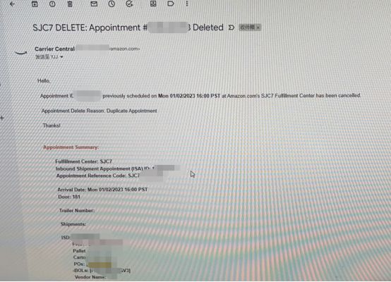 货物送出后,突然被通知被亚马逊仓删掉预约,从而造成货物到达亚马逊指定仓库后,被FBA仓拒收。